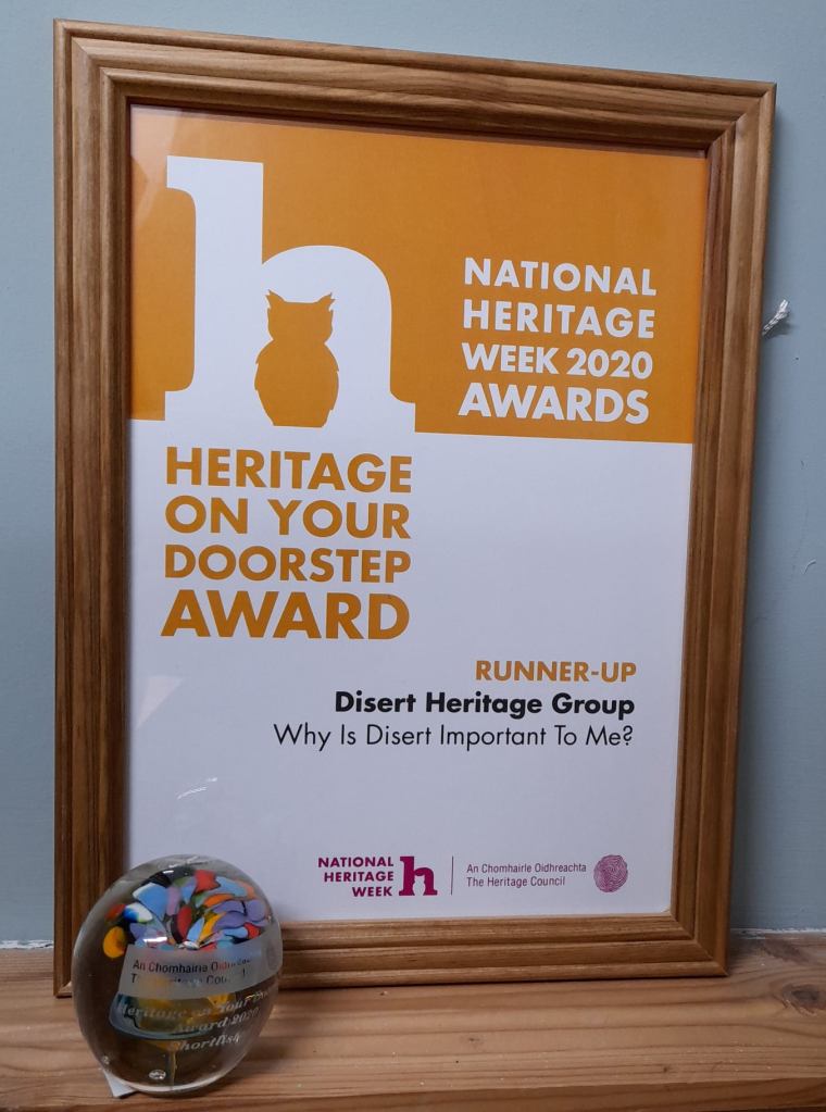 We were delighted to receive our certificate and piece of Jerpoint Glass to acknowledge that the series was a Runner Up for the’Heritage on Your Doorstep’ award during National Heritage Week 2020 Awards, sponsored by the Heritage Council.
